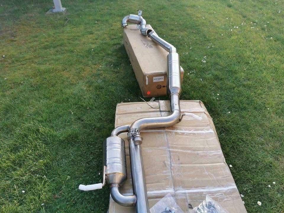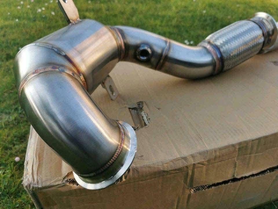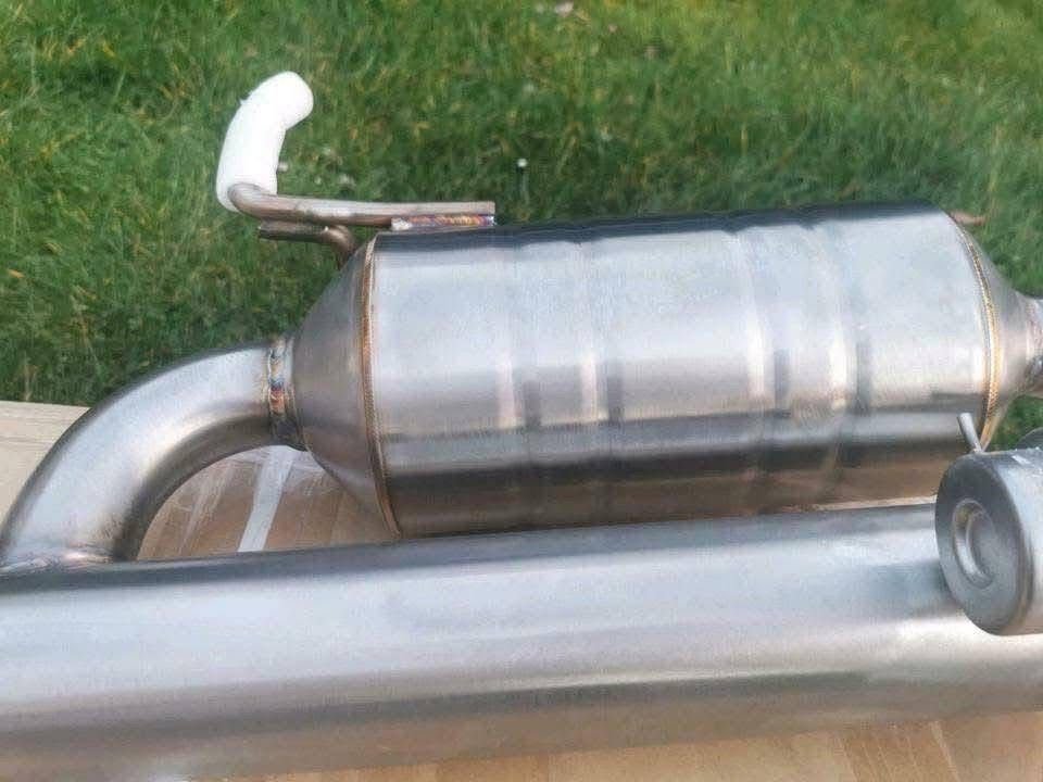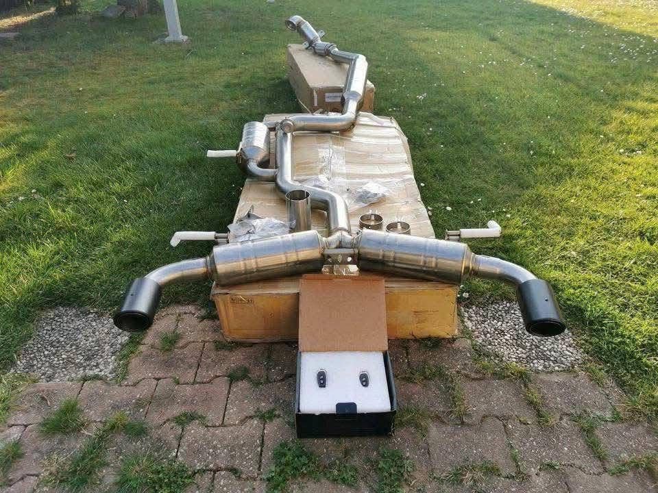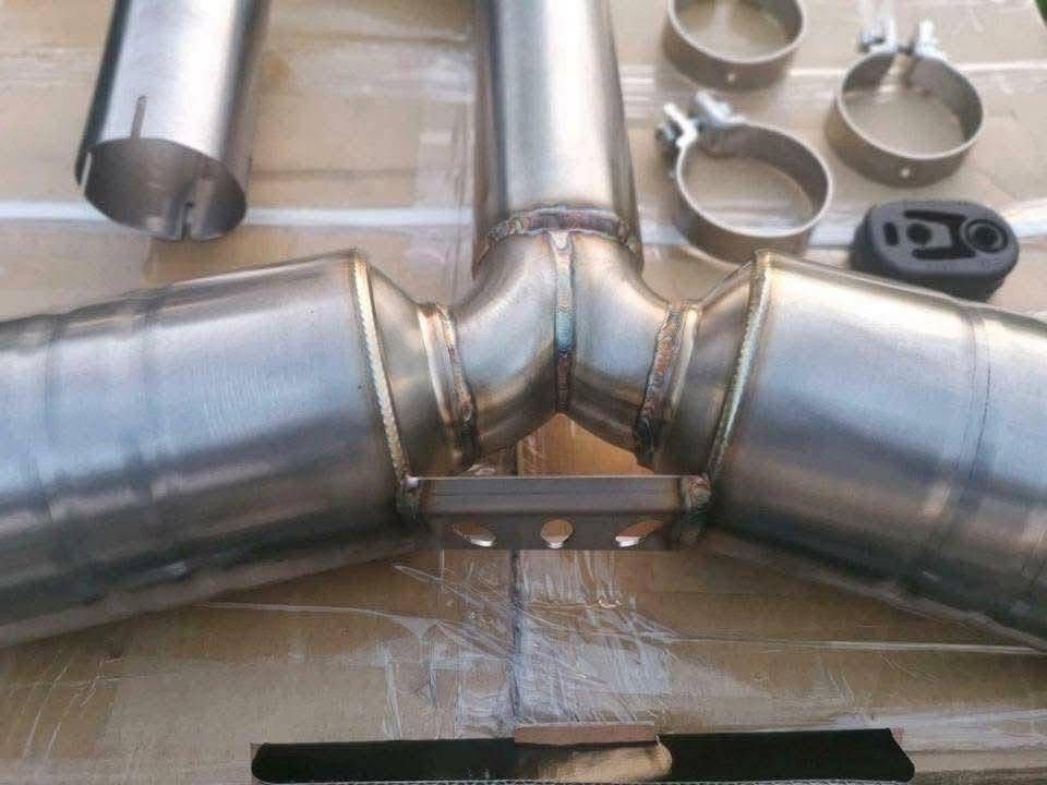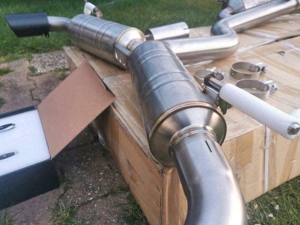 Échappement sport Golf GTI Mk7 en inox avec embouts carbone. Son profond, flux optimisé et performances améliorées. Produit neuf, installation recommandée.