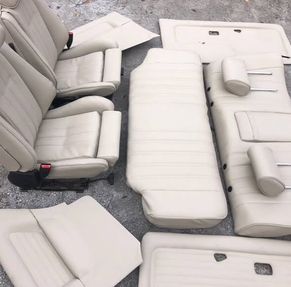 Ce pack comprend des sièges sport avant entièrement refaits, une banquette arrière assortie, ainsi que des panneaux de porte pour coupé. Chaque composant est rénové avec des matériaux neufs pour garantir une qualité proche du neuf. La finition beige lumineuse ajoute une ambiance raffinée et unique à l’intérieur de votre véhicule.