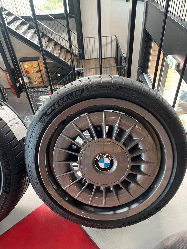 Ces jantes sont en excellent état et présentent une peinture fraîche Gunpowder Metallic qui met en valeur leur design classique. Équipées de pneus Michelin Pilot Sport quasi neufs (~500 km), elles garantissent sécurité, adhérence et confort de conduite optimaux. Prêtes à être montées, ces jantes représentent un investissement idéal pour les collectionneurs et passionnés recherchant authenticité et fiabilité pour leurs projets BMW.