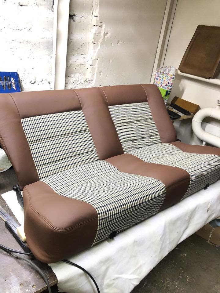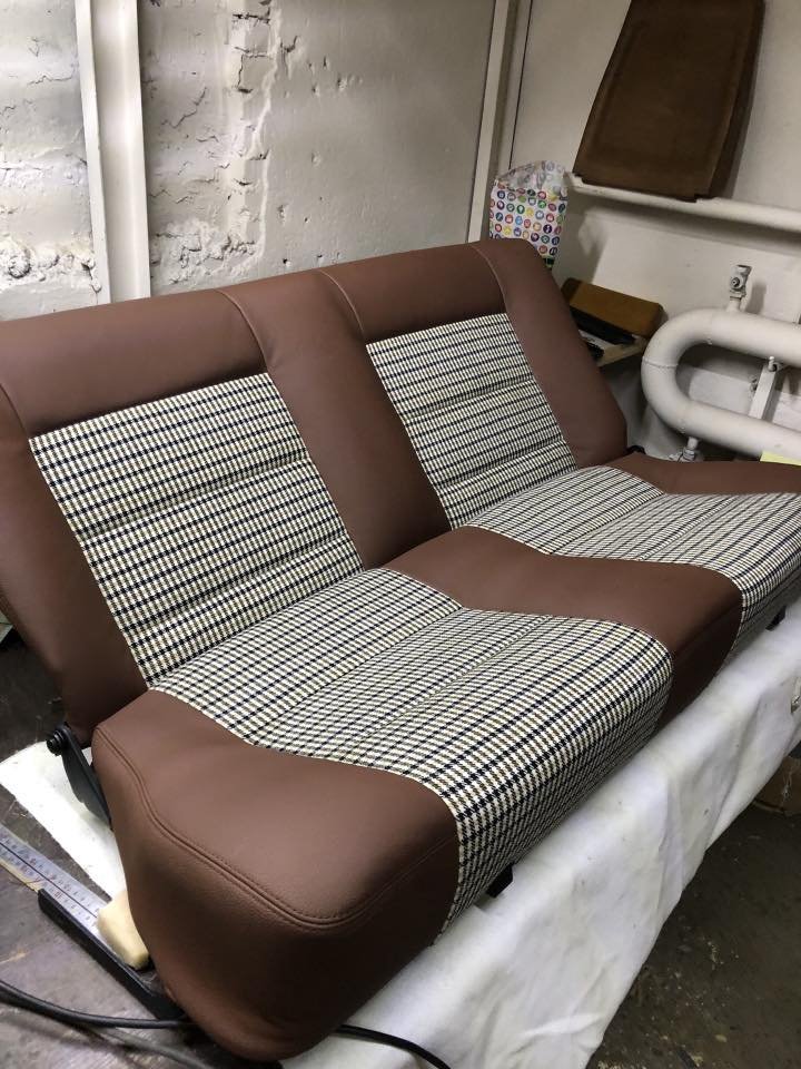 Redécouvrez l’élégance et le confort avec cet ensemble complet de sièges avant RECARO et une banquette arrière, méticuleusement restaurés. La sellerie exclusive, mêlant cuir marron et tissu Porsche d’origine, offre un maintien optimal et une esthétique sportive, tout en respectant l’authenticité du modèle Volkswagen Golf 2.
